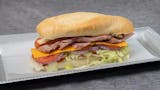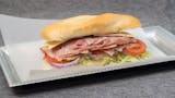 "Served with Pepperoni, Salami, Ham, Mozzarella Cheese, White American Cheese, Lettuce, Tomato, Onion, Creamy Italian Dressing, All nestled between a crispy sub roll. Guaranteed to satisfy your cravings and leave you wanting more!"